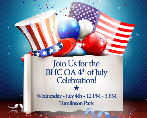 BHC OA’s fabulous July 4th event is just days away! Join us at Tumlinson Park, noon to 3 PM! Wear your swimsuits, as there will be a water slide and water tag. Two bouncy houses, a petting zoo, a barrel train ride, photo booth, crafts, and a video game truck will round out the fun!