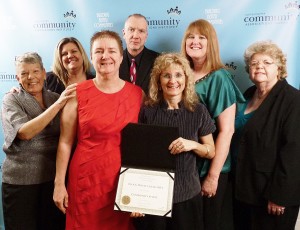 Board President Ursula Logan accepts the CAI Community Spirit award for mid-sized communities on behalf of all of Block House Creek.