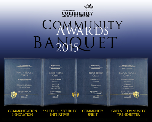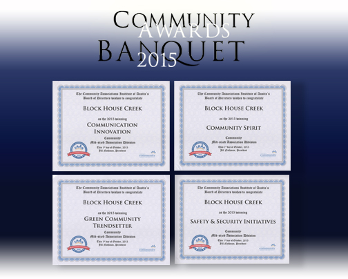 A big round of applause to each and every BHC OA volunteer, regardless of level of responsibility. To receive such high levels of recognition, especially given strong competition across a broad span of the Austin Metro area, would not have been possible without the commitment and devotion of our volunteers who so diligently strive to ensure that the assets of Block House Creek remain strong and admirable assets.