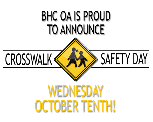 In support of National Bike and Walk to School Day, your BHC OA Maintenance and Safety Committee is hosting a Crosswalk Safety Day on Oct 10th. Here is the basic information on the event.