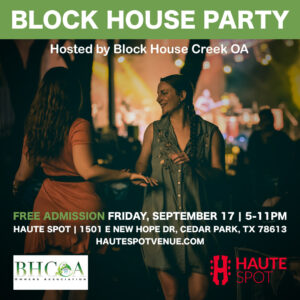 Please RSVP “Haute Spot” to bhcoa@pinnacletexas.com with your name and address.