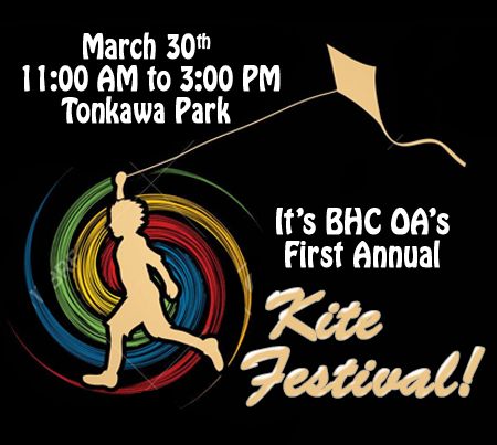 Kite fliers, bring your kites to the green grass of Tonkawa Park, fill the skies, and compete in BHC OA’s First Annual Kite Contest! Prizes will be awarded to the best kites constructed by the age categories of under 17 and 18 and older (all kite fliers are welcome, but only homemade kites will be eligible for the contest). Be watching for the soon to be released announcement of contest details.