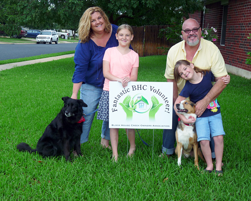 In her own words, “Living in a master planned community affords residents all sorts of benefits of being part of a tight community. I took it on as my responsibility to my family to ensure that Block House Creek remains a safe and welcoming community. I am a firm believer in being active in volunteer work, probably because I have a long history of volunteering for organizations that help educate and empower children and needy families. Yes. One person can make a difference, but the efforts of others are required to ensure that our unique BHC continues to grow, thrive, and be the community we love. It is important that we all work together within groups—school, MUD, OA, swim team, county, state—to ensure the best outcomes. I am not alone in my efforts on behalf of either the Association or MUD. I would love to put an OA Outstanding Volunteer sign in the yard of every volunteer who has helped and supported me in making so many projects and events a success.”